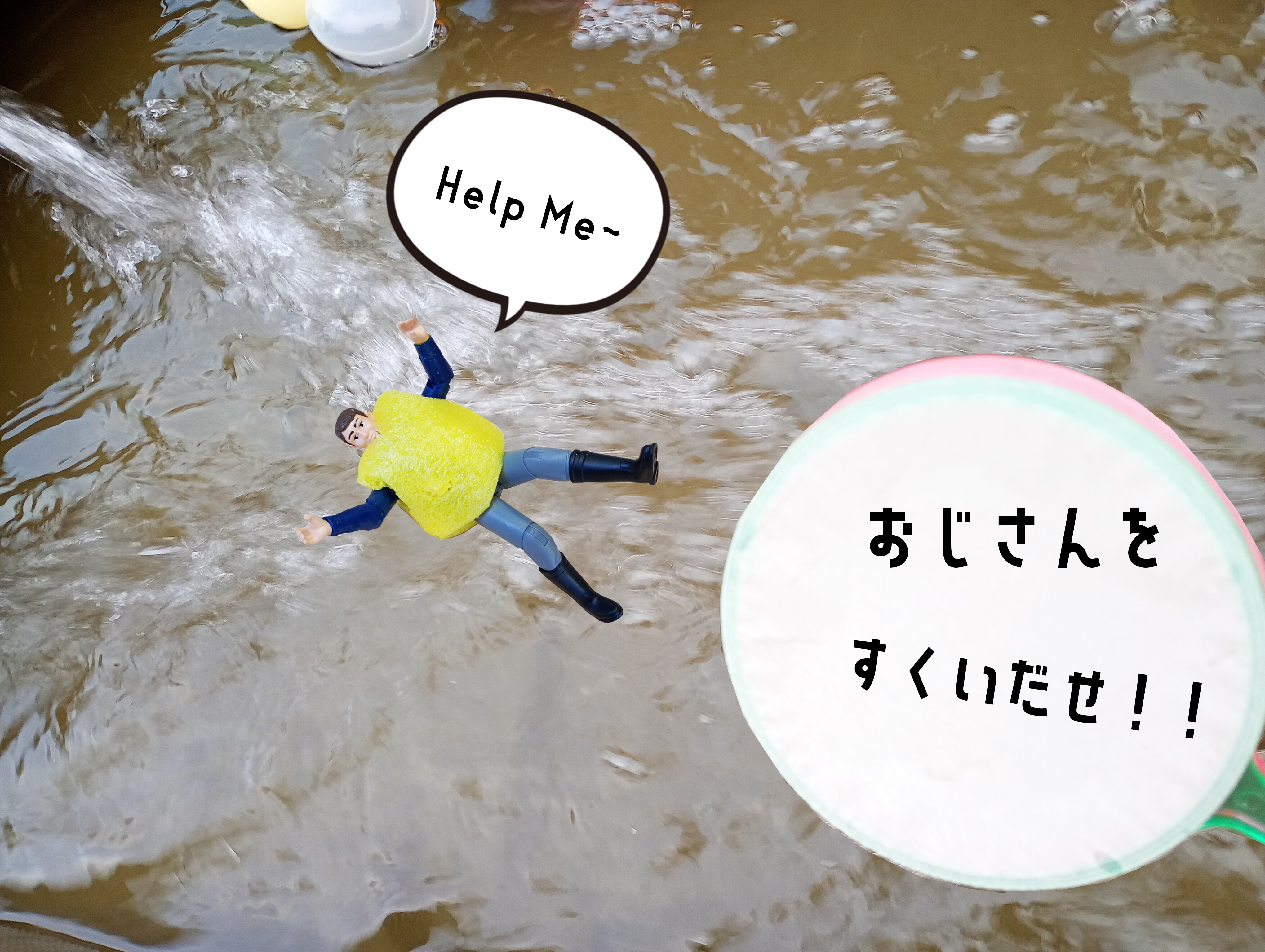 「流されて困っているおじさんを、すくってあげよう、激流すくい」
